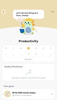 Currently, I'm using the Finch app for self care. It gamifies daily activities like brushing your teeth or even just getting out of bed. I'm on day 294 of using Finch time. (See? I can restart a streak on occasion!) When I first starting doing Cozying Up, I added a daily weekday task of writing 1,000 a day. I rarely if ever did it and eventually I just deleted the task from Finch.